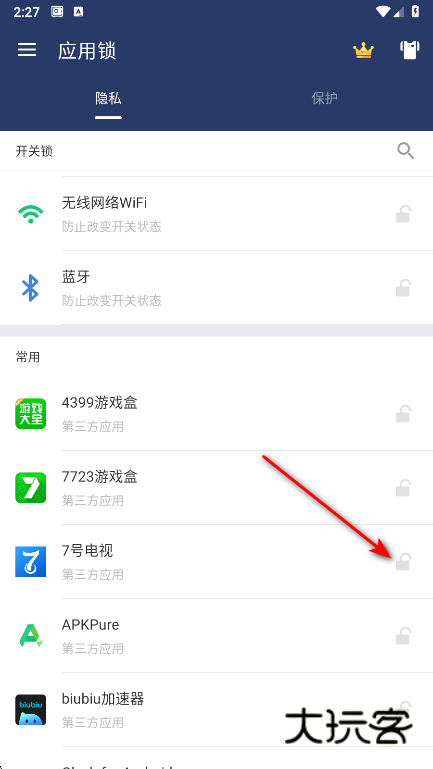 1、首先你需要在花灯下载网下载安装进入应用锁,点击保护