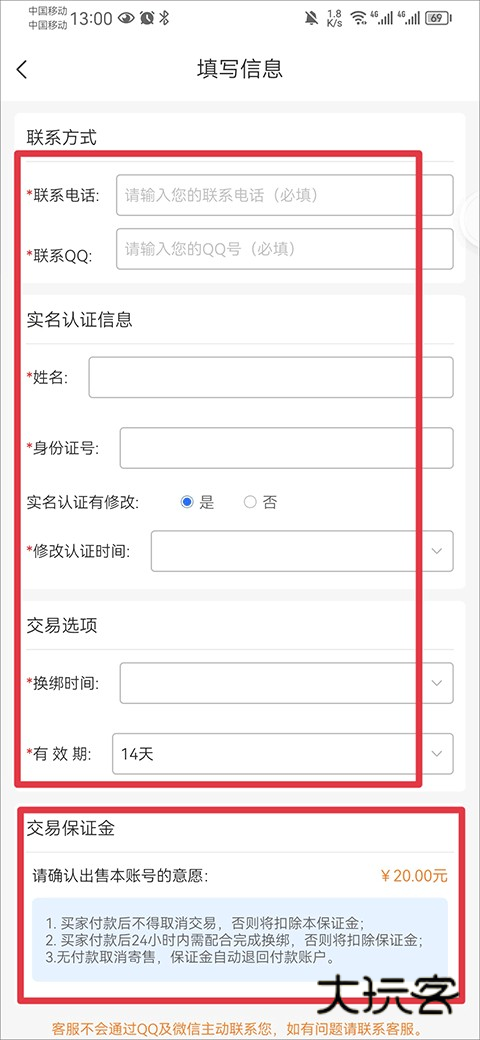 4、接着继续将联系方式、实名认证、交易选项填写完成后,点击提交并完成保证金支付;