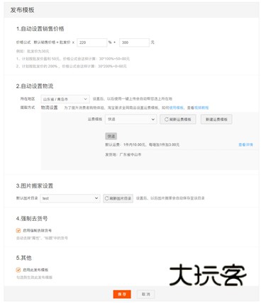 4、根据您的需求设定模版,然后启动模版,点击“保存”,下次发布宝贝时会按照模板的信息由系统相应填入。