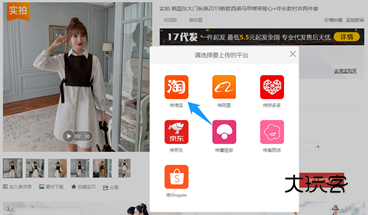 1、在17zwd app搜索您喜欢的宝贝,将鼠标移到宝贝图片即显示相应的功能,点击“一键上传”,选择“传淘宝”。