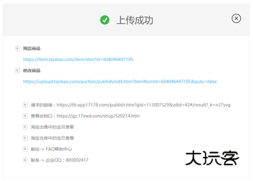 6、上传宝贝成功后,您可以点击“预览商品”查看您上传到淘宝的宝贝,或者点击“修改商品”修改您上传到淘宝的宝贝。