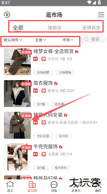 1、逛市场功能整合经平台认证的线下批发商资源,实时查看商家新品与动态。
