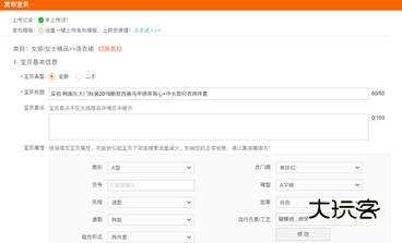 3、若已经订购一键上传,系统自动跳转到填写宝贝信息页面,可以设定宝贝发布模版。