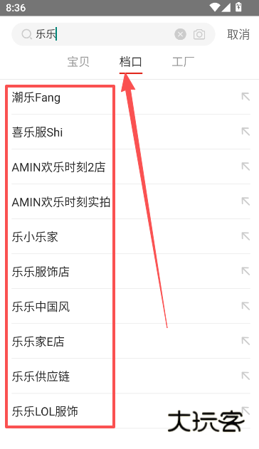 3、搜索档口,在目标档口找到想要的商品。