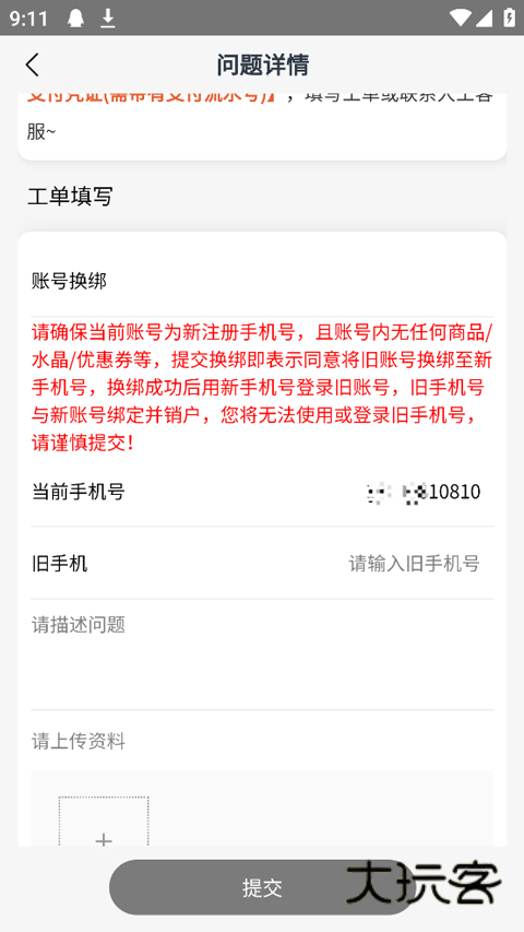 4.按要求填写旧手机号和相关描述,等待审核通过后即可用新手机号登录原账号。
