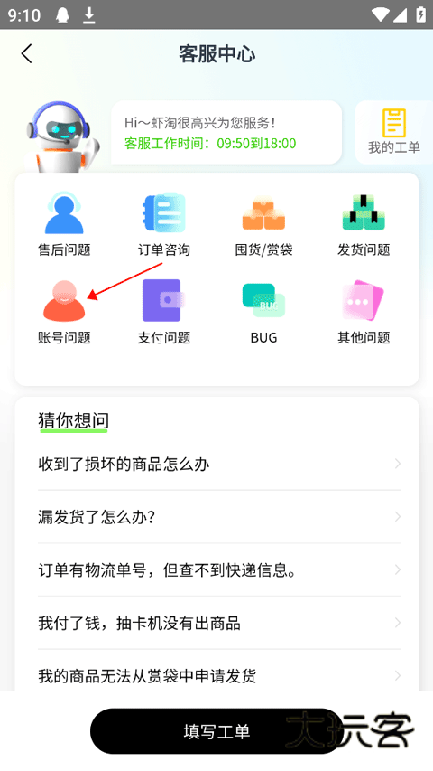 2.选择【账号问题】。