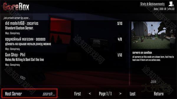 3、如果好友已经创建了房间你可以点击“search”搜索进入,如果没有创建房间就需要点击“Host Server”创建主机来创建房间;