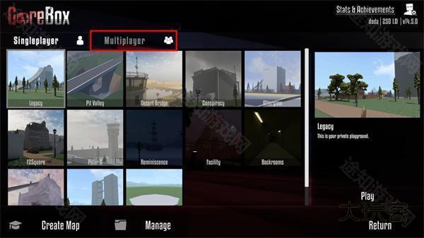 2、出现地图界面后,点击上方的“Multiplayer(多人游戏)”;
