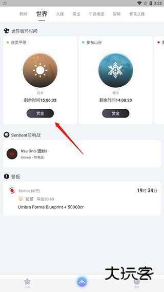 3、在【世界】页面,点击【赏金】参与相关游戏活动。