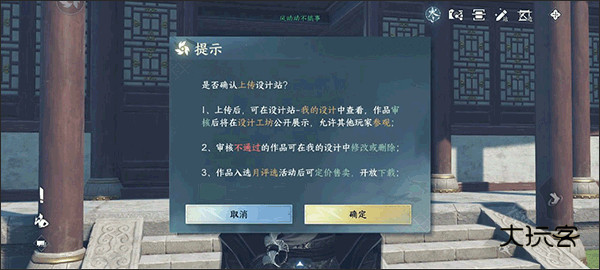 3、创意数据上传:玩家可通过建造模式内的【导出】功能,将庄园设计数据上传至官方设计站,保存并展示作品。