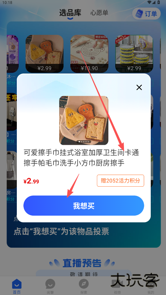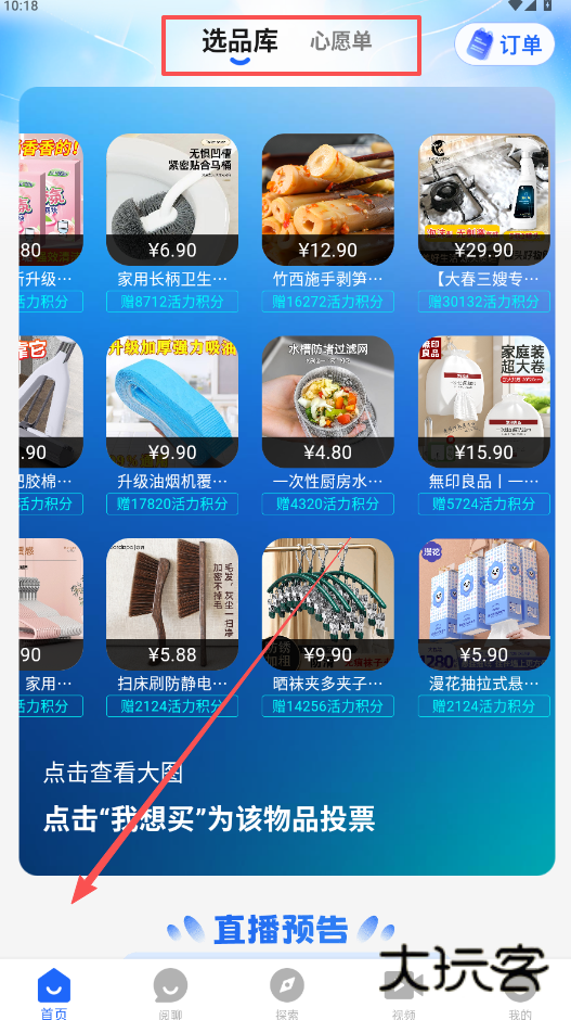 3、注册即登录,来到首页分别查看“选品库”和“心愿单”。