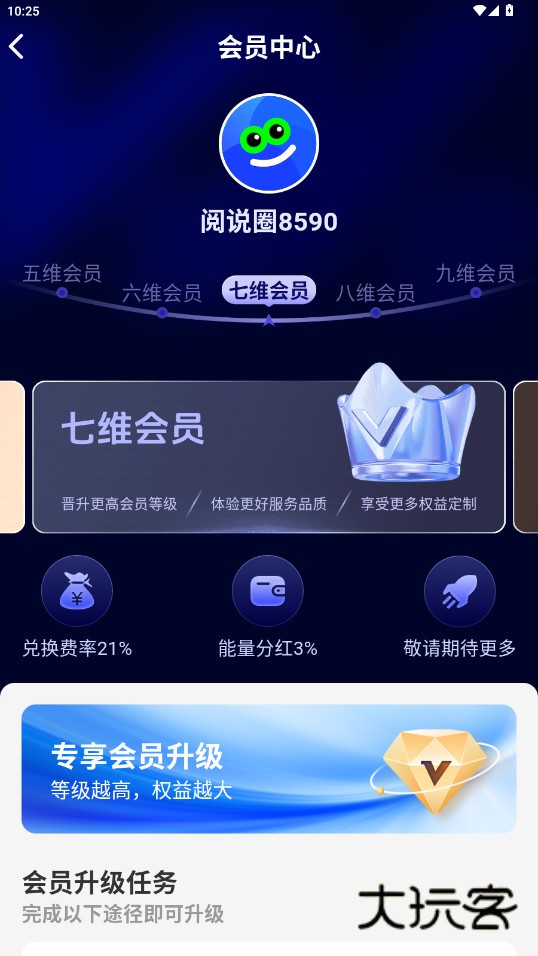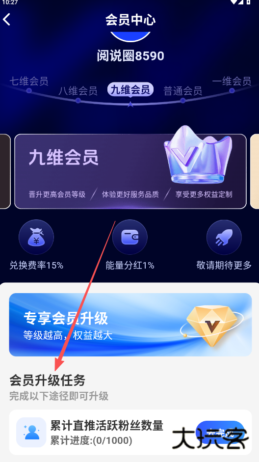 阅说圈的会员成长体系主要围绕多等级会员制度设计,通过提升会员等级为用户提供更优质的服务和专属权益,等级越高,用户可享受的权益越丰富,例如: