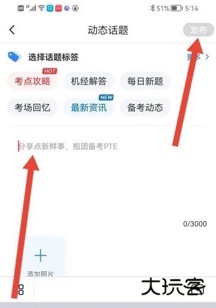4、在话题编辑界面填入欲发布的内容,确认无误后点击【发布】,动态即可成功发出!