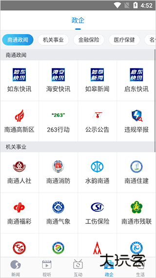 4、在政企页中,用户可享受南通政闻、机关事业、金融保险、医疗保健等服务功能;