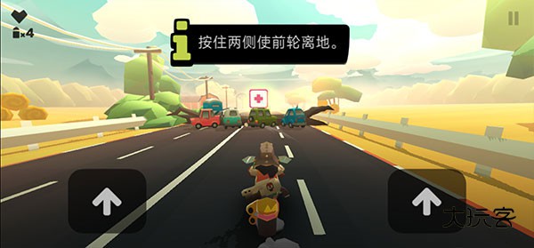 4、当你遇到障碍物时,按住两侧使前轮离地,进行起飞越过障碍;