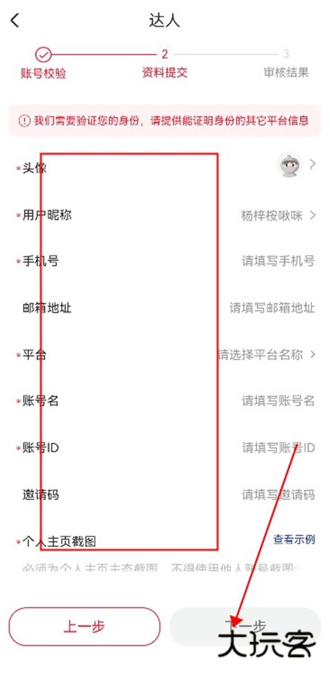 5、接下来填写各种基本信息,然后点击下一步查看审核结果即可。
