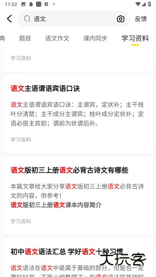 3、在搜索结果中还可以筛选语文作文、学习资料、课内同步等