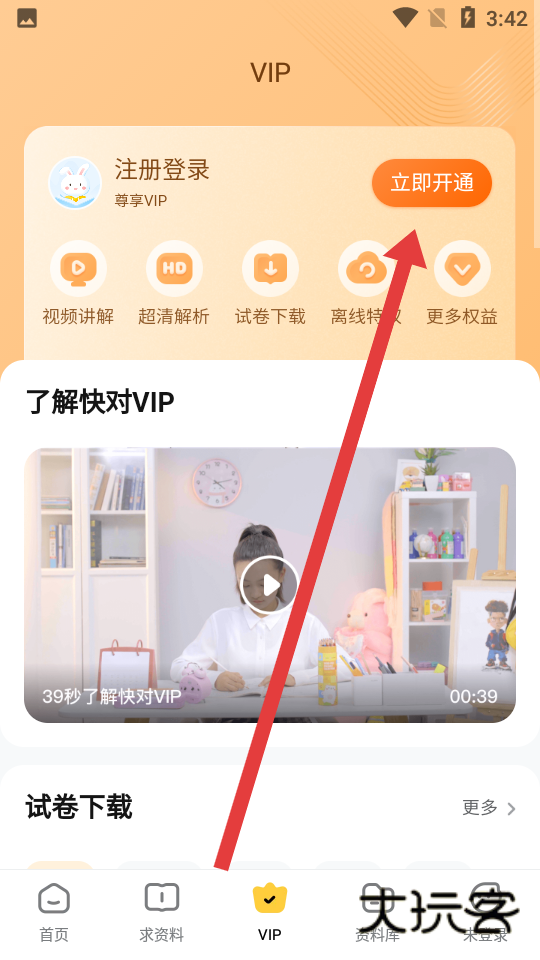 1、打开应用后找到VIP专属页面,在页面显著位置点击立即开通按钮,即可开通尊享VIP服务。