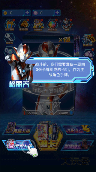 1、在奥特曼抽卡游戏王游戏中,每一位奥特曼都有它独特的玩法,各位一定要去熟练的掌握这样才能得心应手。