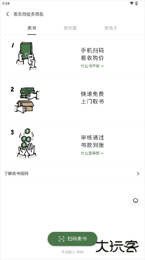 有闲置书籍要处理?在多抓鱼 app 内直接扫描图书 isbn 码,即时查看书籍收购价。下单后快递免费上门取书,多抓鱼收到书并审核通过后,即刻打款,方便无负担。