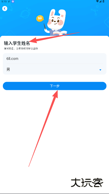 5、为了方便老师的管理,请输入学生用户姓名并选择性别,继续进行下一步的操作。