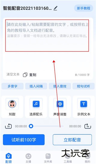1、首先我们打开软件,然后在文本框当中输入想要进行配音的文字