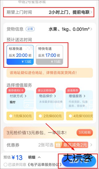 4、然后再选择快递员上门时间,以上内容填写完成点击【立即下单】即可完成快递下单,之后耐心等待快递员联系你来取件即可。