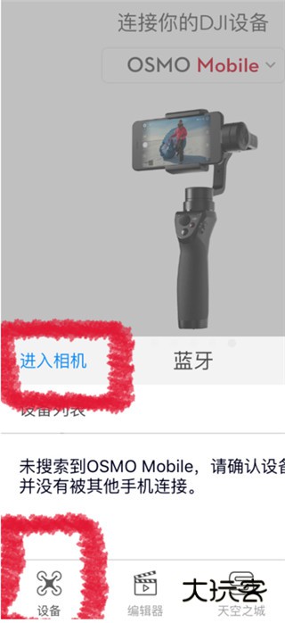 然后打开DJI Go APP→进入【设备】→点击【进入相机】