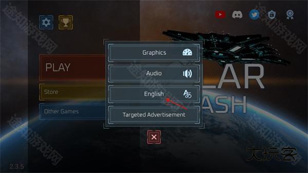 1、第一次进入到游戏显示的是英文界面,点击设置选项。