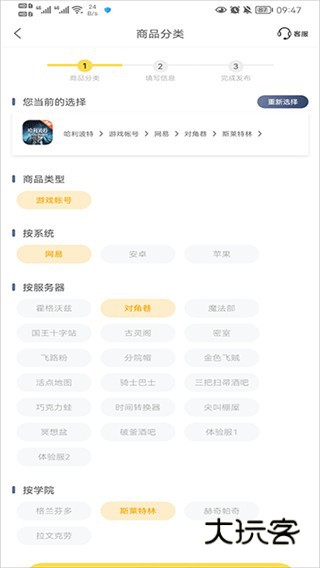 1、打开软件界面,在卖号界面中选择你要出售的类型