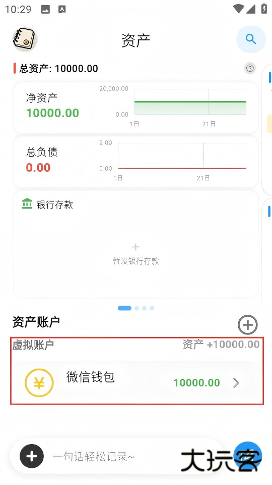 4、点击【保存】后,回到资产页面,能看到【微信钱包】已成功添加。