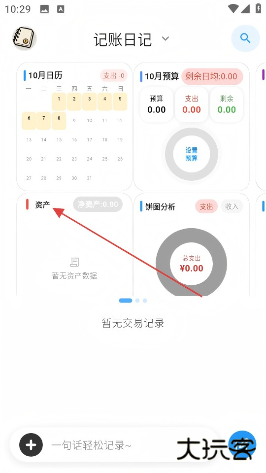 1、打开记账软件,点击界面中的【资产】模块,进入资产页面。