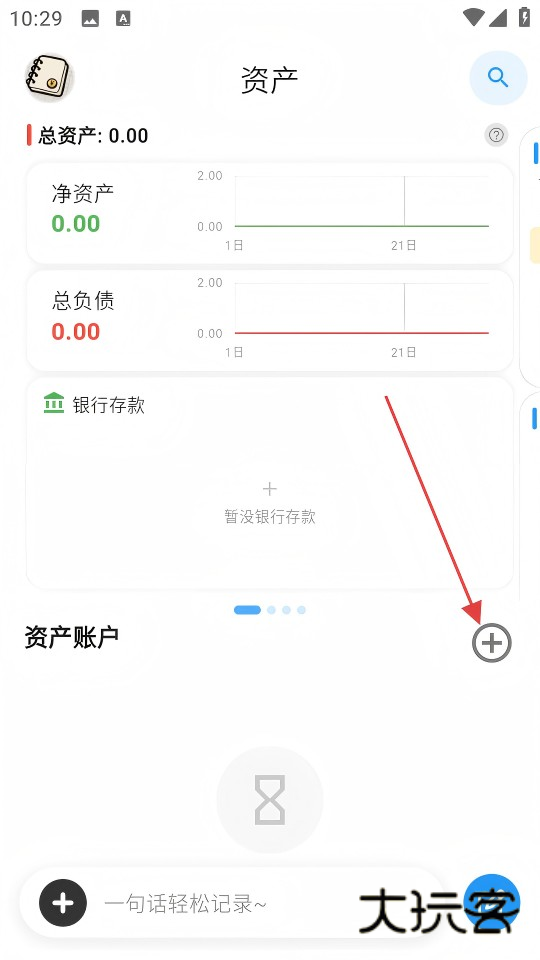 2、进入资产页面后,点击页面右侧的“+”按钮,开始进行资产账户的添加操作。