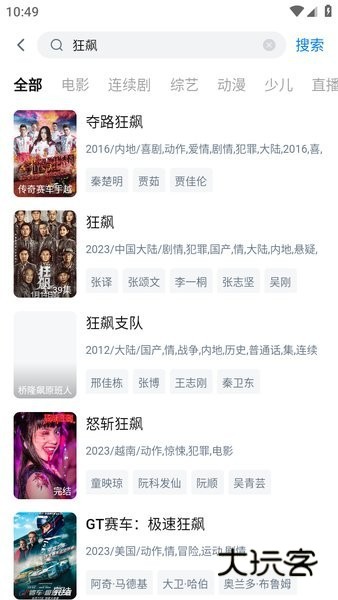 打开大师兄影视后,点击头部的搜索框,输入关键字,就可以搜电视剧了,比如狂飙;
