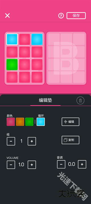 5、还可以选择设置按钮编辑当前打击垫的颜色以及音调等等。