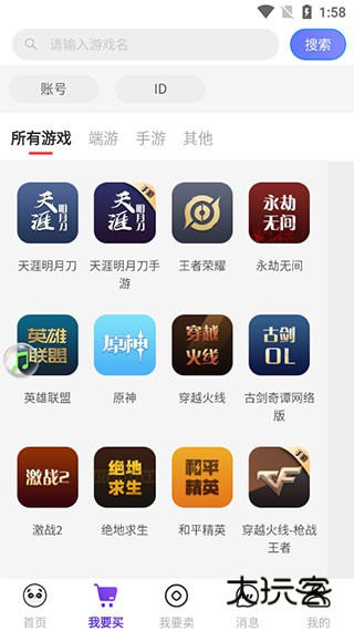 3、我要买,你可以根据自己的喜欢玩的游戏进行购买游戏账号,端游和手游都有;