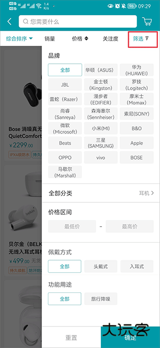 2、进入后,可以在筛选中根据品牌、价格等方式进行筛选