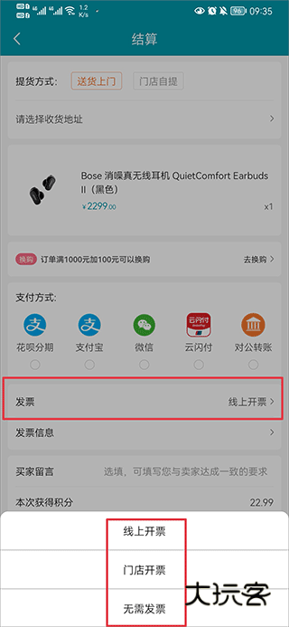 5、需要开发票的用户可以在支付界面中点击发票,然后选择开票方式即可