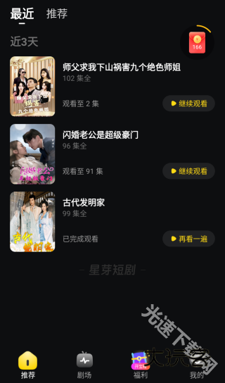 星芽短剧观剧之后的历史记录会显示在两个地方,一个是“最近”,一个是“历史”,星芽短剧无需登录就支持全集短剧免费观看,同样也会留下历史记录,但是此时的历史记录只会记录在“最近”中,并且不支持删除。