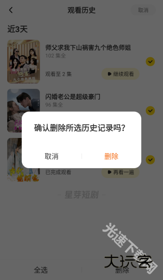 删除之后,星芽短剧“最近”中的历史记录也随之删除了。