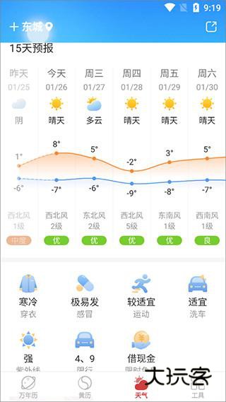 4、点击天气,你还可看到今天的天气、体感等,以及还可以看到最近15天天气情况
