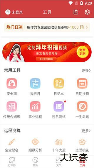 2、工具更实用,便携式贴心助手:集星座、吉日查询、黄大仙灵象、周公梦解译、日期计算、女生经期助手等实用工具。