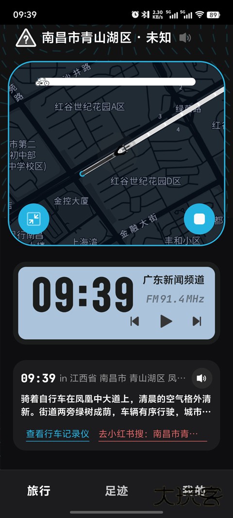 3、然后应用会开始根据当前位置开始模拟旅行,并介绍途径附近的特色景点和小吃