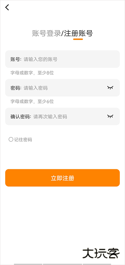 2、点击“注册账号”输入账号、密码点击立即注册即可。