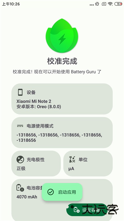 2、校准完成后,会显示电池的一些基本信息,点击启动应用。