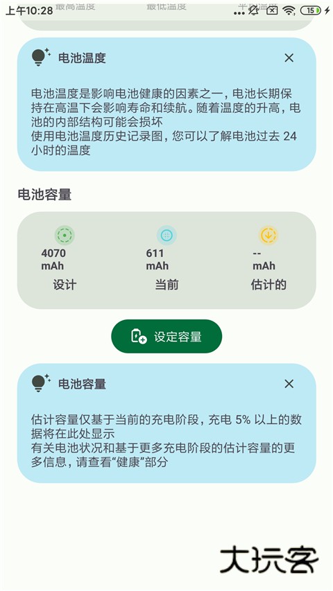 5、查看电池容量,估计容量仅基于当前的充电阶段。