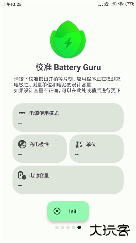 1、通过本站下载BatteryGuru电池检测并打开,完成新手引导后点击校准。