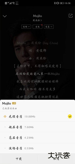 【无损音质】多种音质选择,享受无损音质。