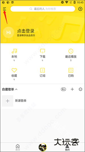 1.在酷我音乐推荐界面中点击左上角的【三】按钮。