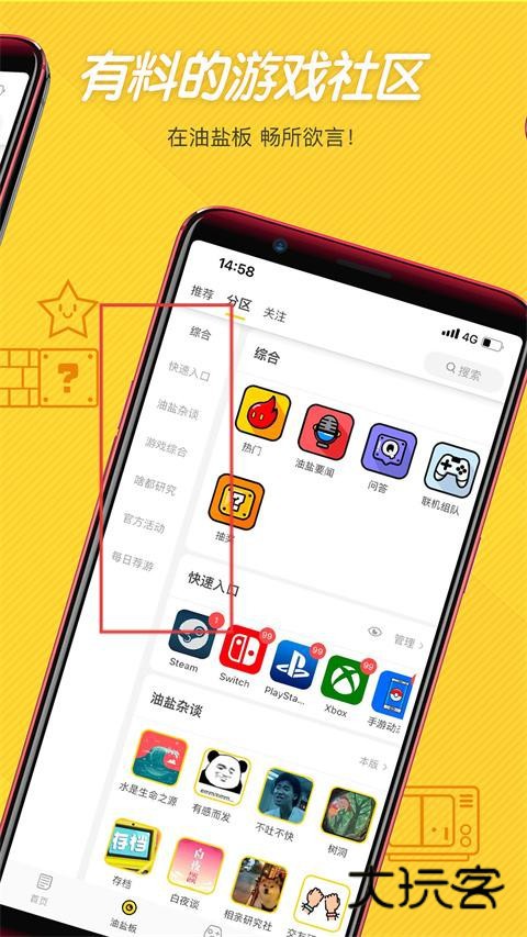 3、点击【分区】-【综合】,在分类中查找感兴趣的游戏话题。